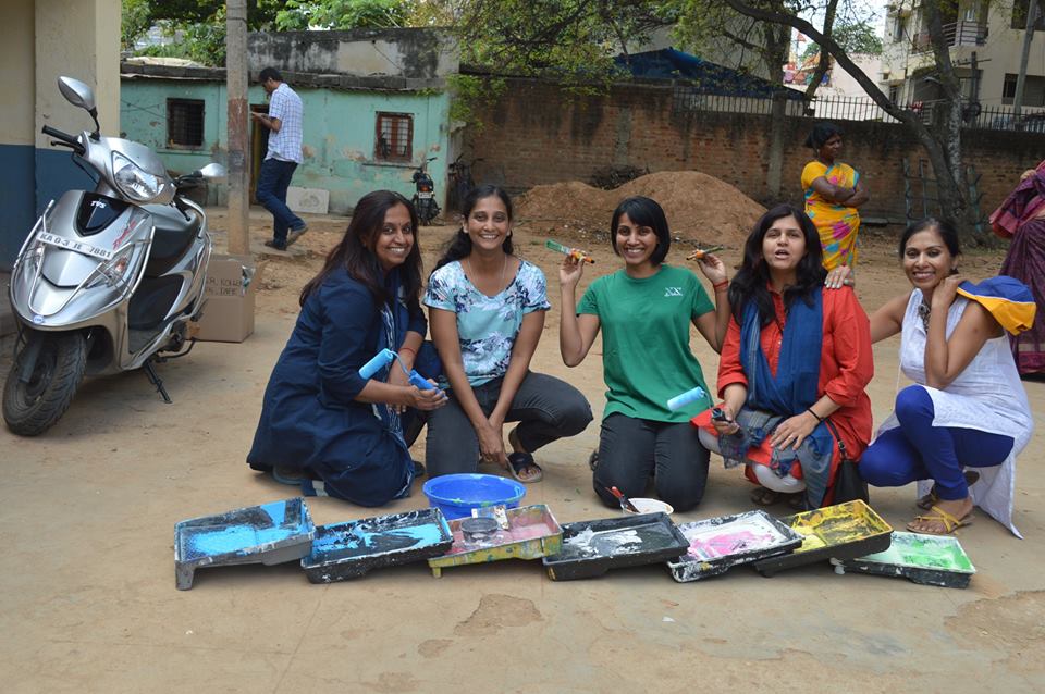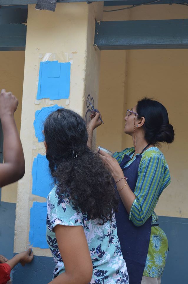Students and Members of New Acropolis got together for an Art project to bring colour, beauty and values to the Government Kannada school at Murphy town