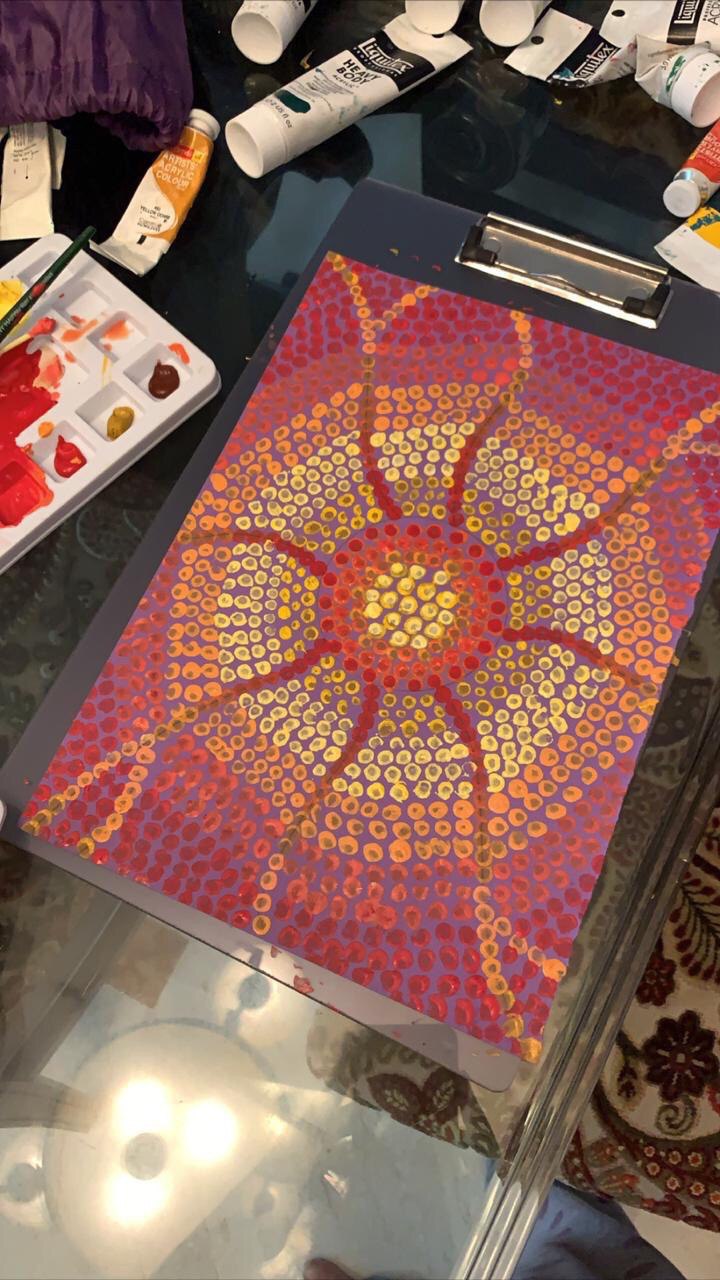 On 11 July 2020, Culture Circle of New Acropolis conducted an online “Workshop on Aboriginal Art”. A creation myth called Dreaming or Dreamtime was elucidated through a discussion of its symbolic dot-making technique. The members also collectively tried out the technique by painting versions of the “myth of creation” passed down through generations of Australian aboriginal tribes.