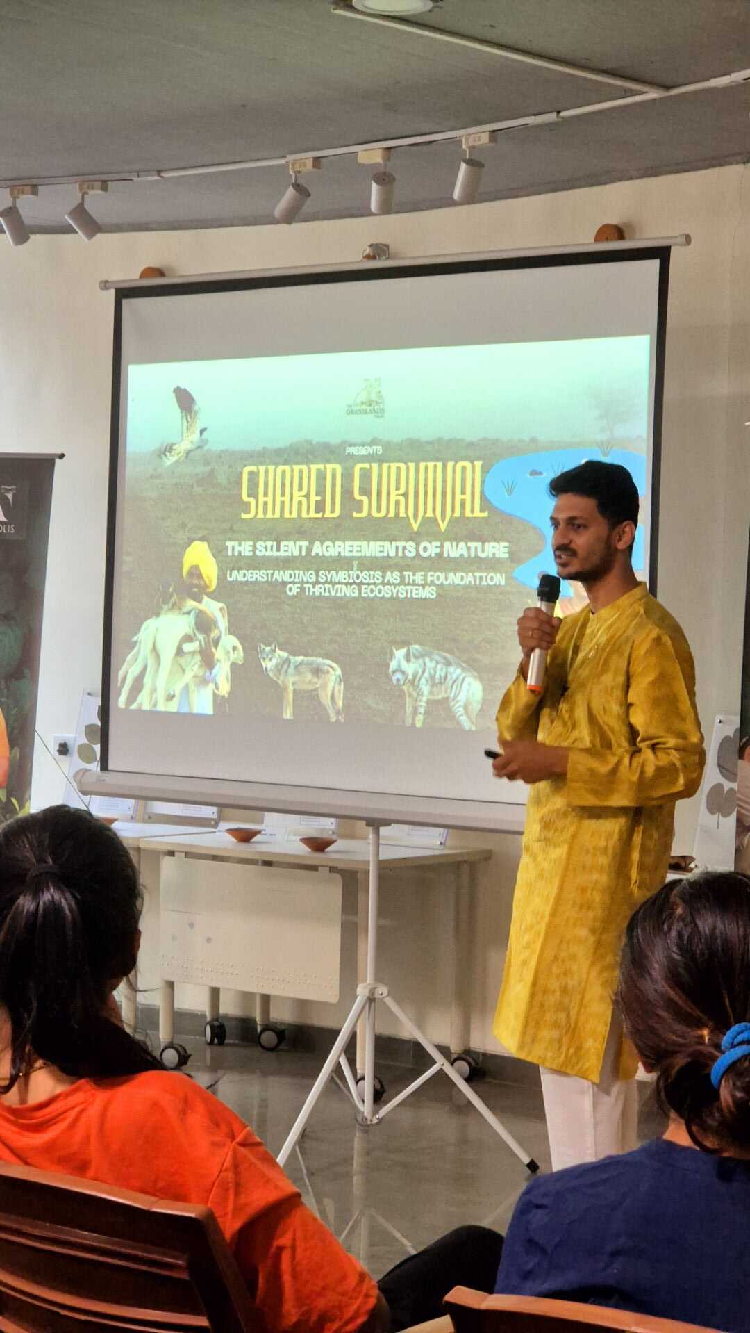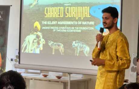 Following refreshments, Vishwatej Pawar, co-founder of The Grasslands Trust, delivered an insightful presentation on “Biodiversity & Symbiosis in Nature.” He illustrated how various species adapt to their environments through physical features like wings, beaks, and claws, and explained the interconnectedness of natural ecosystems. Pawar also outlined his organization’s efforts in habitat restoration, wolf conservation, and grassland protection, underscoring the use of modern technology in conservation efforts.