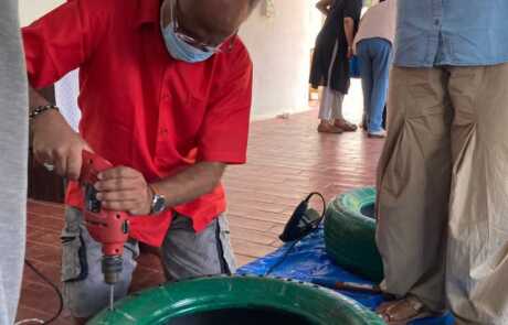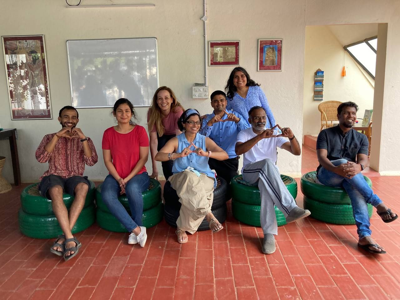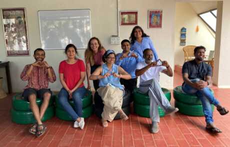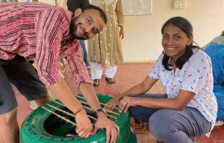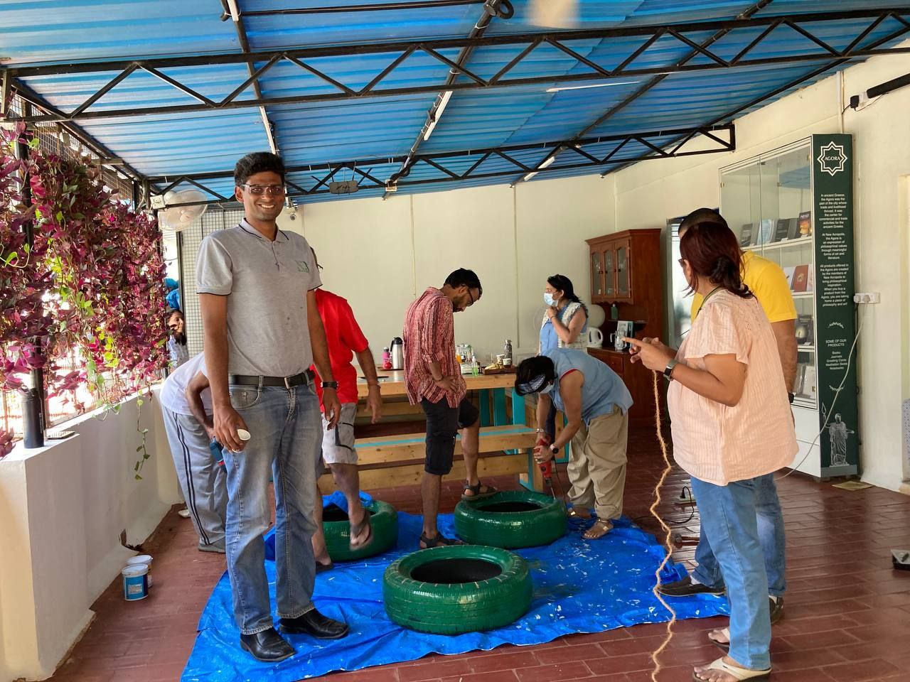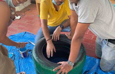 Our philosophical journey found another expression when members & volunteers of New Acropolis India South came together on a beautiful Sunday morning to give new life to used car tyres by upcycling them into seats.
