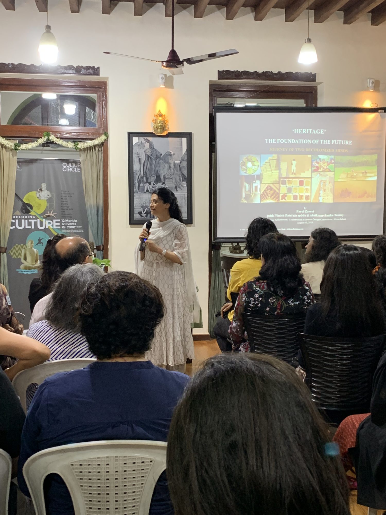 On 2nd August 2019, The Culture Circle of New Acropolis hosted a talk at the Colaba Centre by prominent architect Parul Zaveri titled “Heritage, the Foundation of the Future: An Architects Journey.” Parul Zaveri and Nimish Patel together established an architectural design consultancy in Ahmedabad called Abhikram, with the objective of creating building designs that are “functionally, psychologically, environmentally and spiritually more contextual and comfortable for all”.