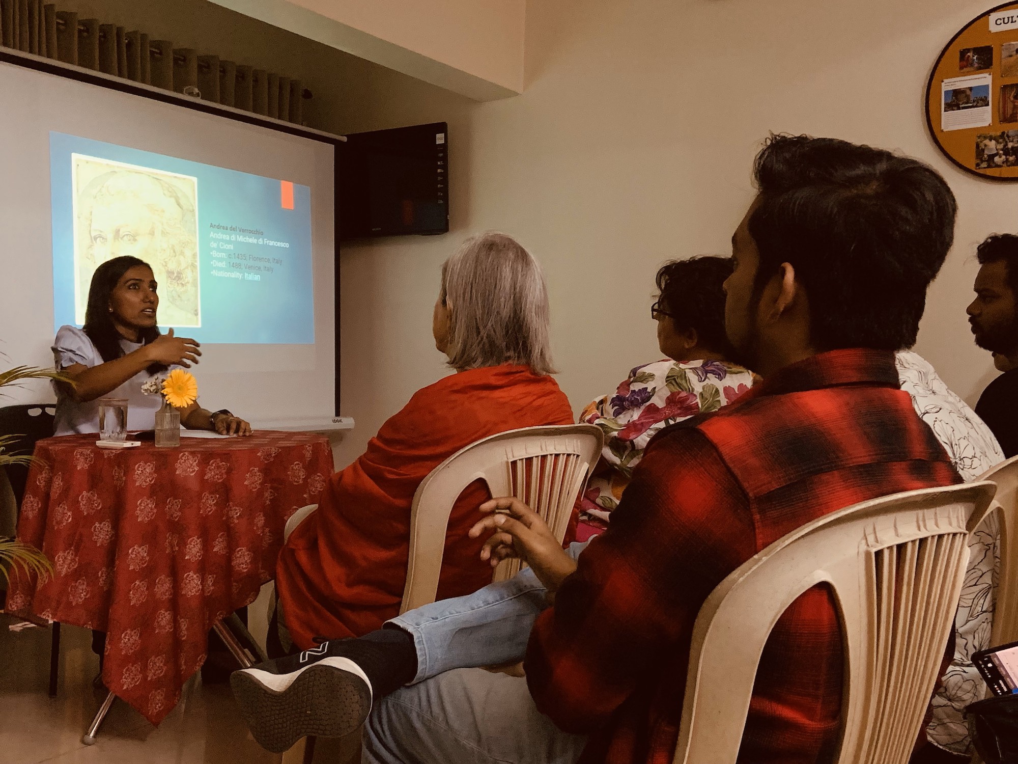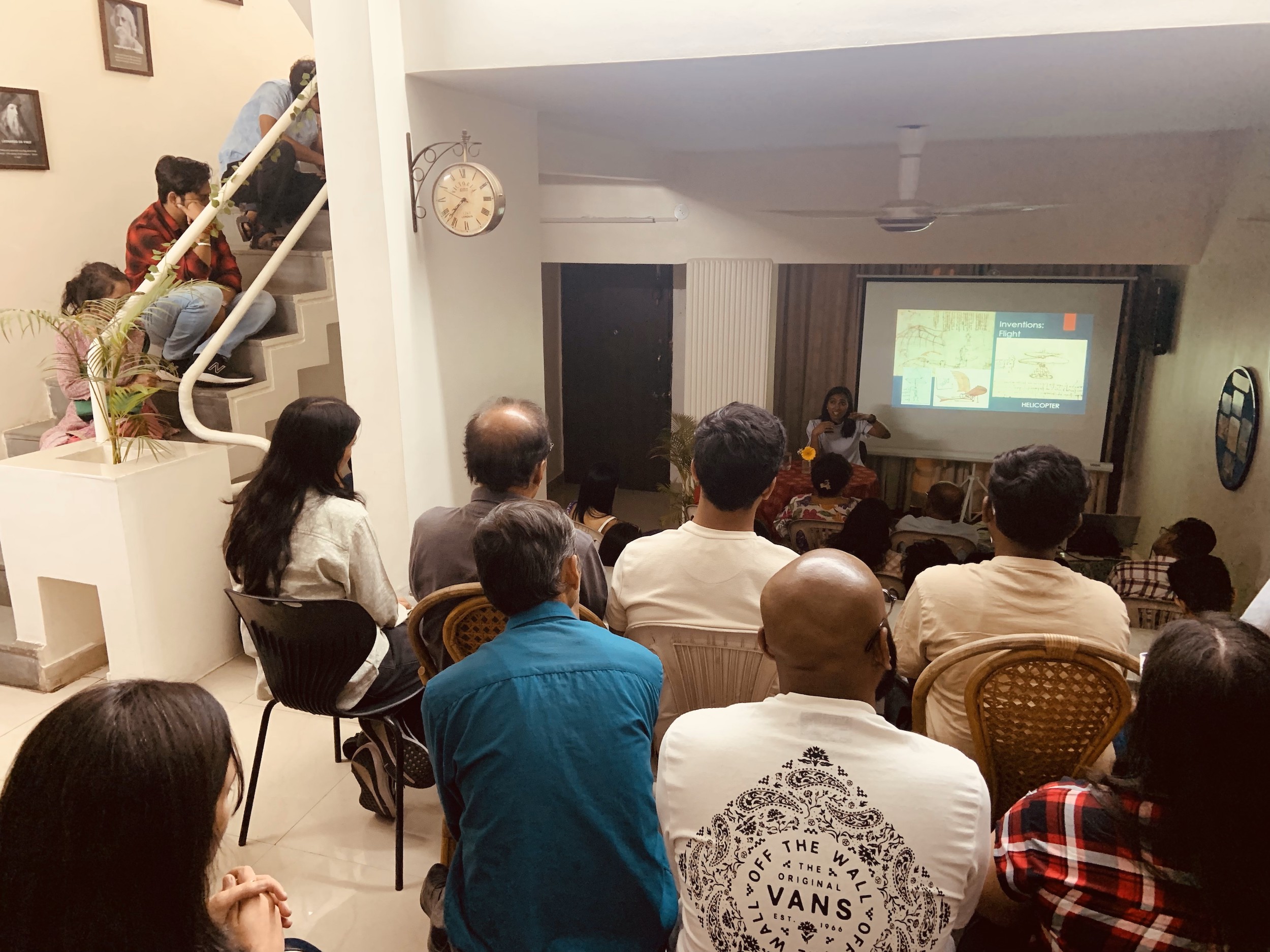 Shraddha Shetty, Branch Manager of New Acropolis Pune, guided 45 participants through a visual journey of Da Vinci’s masterpieces and philosophy showcasing iconic works such as ‘John the Baptist,’ ‘Ginerva Benci,’ ‘The Vitruvian Man,’ and the enigmatic ‘Mona Lisa,’ interweaving them with insightful quotes from Da Vinci’s writings.